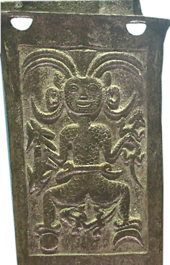 中國文化在世界上以龍文化著稱。龍蛇并稱是華夏文明的特色。在十二生肖中辰為龍,緊隨其后的巳為蛇,或稱小龍。可知二者本來就關(guān)系密切。龍是現(xiàn)實(shí)中莫須有的動(dòng)物,存在于人類群體的信仰和想象之中。蛇是現(xiàn)實(shí)中存在的爬行動(dòng)物,但是同樣自石器時(shí)代就被神話化了。有各種史前符號(hào)刻畫表現(xiàn)的蛇形象可以為證。在萬物有靈的信仰時(shí)代,蛇無疑是最神秘的神靈化身之一。美國考古學(xué)家金芭塔絲研究歐亞大陸眾多的史前造型符號(hào),得出結(jié)論說,早在兩萬年前,蛇就充當(dāng)主管生命再生的女神象征之一,其相關(guān)的造型藝術(shù)表現(xiàn)一直傳承到文明史中,有所謂操蛇之神的形象。我們把史前文化的宗教崇拜和神話表現(xiàn)看作源遠(yuǎn)流長(zhǎng)的大傳統(tǒng),則文字記載的書面文化為后起的小傳統(tǒng)。二者的重要區(qū)別在于符號(hào)意義的編碼方式,即文字的有無。中國夏代的文字系統(tǒng)目前尚未發(fā)現(xiàn)。但是年代相當(dāng)于夏代的神蛇造型已經(jīng)有不少考古發(fā)現(xiàn)。尤其值得一提的是20世紀(jì)末在山西襄汾陶寺遺址出土的彩繪蟠龍?zhí)毡P(現(xiàn)存中國社會(huì)科學(xué)院考古研究所),和21世紀(jì)在河南偃師二里頭遺址新發(fā)現(xiàn)的“綠松石龍”。陶寺出土的陶盤直徑37厘米,盤中以紅彩和白彩繪制一只蟠曲的蛇,首尾較細(xì)而環(huán)繞,口中吐出長(zhǎng)長(zhǎng)的信子(一說是谷穗或藥草),身上刻畫出鱗片狀花紋。二里頭被學(xué)界看成夏代晚期都城所在地,迄今發(fā)現(xiàn)的最大一件玉器造型就是這件綠松石龍形器,位于一座貴族墓墓主人骨架的上身,由2000多片綠松石拼合粘貼而成,長(zhǎng)達(dá)64厘米,只有眼和鼻用白玉鑲嵌而成。其實(shí)這兩件文物的形象命名都是有待商榷的,它們從外觀上看似龍更似蛇。如果用后世區(qū)分龍與蛇的簡(jiǎn)單標(biāo)準(zhǔn):龍有足而蛇無足(參考成語“畫蛇添足”),那么陶寺的“蟠龍”應(yīng)改稱“卷蛇”或“盤蛇”;二里頭的“綠松石龍”則應(yīng)改稱“綠松石蛇神”。二者對(duì)應(yīng)著古文獻(xiàn)上記錄的夏族神話圣物。如《國語·周語上》說:“昔夏之興也,融降于崇山。”注釋家多認(rèn)為崇山即河南洛陽的嵩山,融即大神祝融。《墨子·非攻下》說:“天命融隆火于夏之城間西北之隅。”這兩個(gè)關(guān)于夏代的記錄都說融來自上天。錢大昕《十駕斎養(yǎng)心錄》稱融、熊讀音與龍相同。聞一多則從字形上考察,認(rèn)為融字從蟲,本義指一種蛇、龍。《管子·五行》將奢龍與祝融對(duì)舉,說祝融為南方神:“得奢龍而辯于東方,得祝融而辯于南方。”類似的看法還有《漢書·揚(yáng)雄傳上》“服玄冥及祝融”句,顏師古注:“祝融,南方神。”