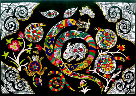 在中國的傳說中,女媧、伏羲、黃帝等都是“人首蛇身”,“蛇”成為古代氏族的一個重要的圖騰標志。有學術觀點認為,古代巴蜀的巴人是古代氐羌部落伏羲、黃帝的后裔,也是蛇的傳人。佐證有三:《說文解字》說“巴,蟲也,或曰食象它(蛇)”;《山海經·海內南經》載“巴蛇食象,三歲而出其骨”;“蜀”字的甲骨文也是蛇形。據(jù)考證,“蜀”字的含義是“人首蛇身”,意即蛇圖騰氏族蟠踞之地。