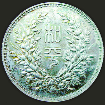 先說幣本身,就其做工和蘊(yùn)意來說,此幣是由意大利著名雕刻師魯爾治·喬治雕模,做工精巧,人物栩栩如生。銀幣正面鑄段祺瑞半身西服像,上鐫楷書“中華民國(guó)執(zhí)政紀(jì)念幣”九字,背面中央鐫篆書“和平”二字,反映了當(dāng)時(shí)的民之心聲——和平。此幣是段祺瑞就任民國(guó)執(zhí)政時(shí)用于饋贈(zèng)參加其就職典禮的各界嘉賓的,彰顯出他的執(zhí)政理念是順應(yīng)民意所求的“和平”。此幣“和平”二字用嘉禾圖托之。“嘉禾圖”是指生長(zhǎng)得特別茁壯的禾稻,古人視嘉禾圖案為吉祥的象征。