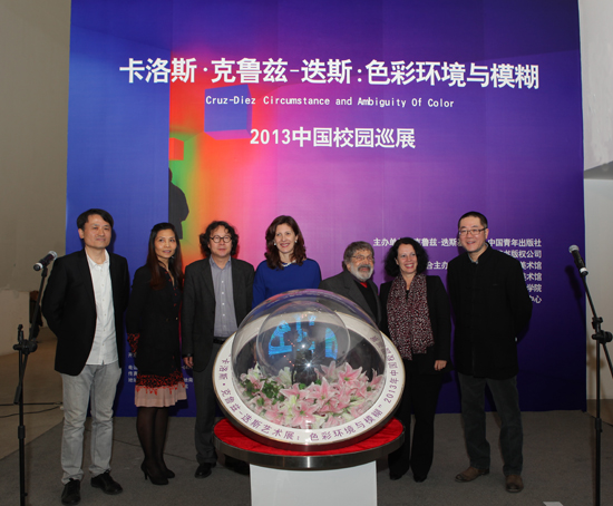 藝術家卡洛斯? 克魯茲-迭斯親臨現場,與中央美術學院院長王璜生、法國駐華大使白林、中央美術學院副院長徐冰、克魯茲-迭斯基金會主席尼克爾·辛德爾等人一同按下開幕啟動按鈕,拉開了“色彩環境與模糊”全國校園藝術巡展的帷幕。同時,由卡洛斯? 克魯茲-迭斯編著、由中國青年出版社出版的《色彩的思考》正式在中國發行。