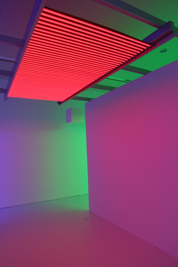 90多歲高齡的卡洛斯? 克魯茲-迭斯作為歐普藝術主要代表人物之一,自1960年起移居巴黎進行創作。其創作生涯起步于二十世紀五六十年代的能動藝術。卡洛斯對于美術的思考拓展了人們關于色彩的概念,證實了色彩現象的感知和與圖像并非關聯,色彩可不依托任何意識侵入空間,獨立存在和不斷演化的現實。他的展覽呈現給觀眾一個絢爛的世界,在這里觀眾會看到色彩的出現和消失時所體現的各種環境,尤其是在“色彩飽和”、“色彩感應”系列作品中。置身于展覽,每位觀眾都是色彩的演繹者,藝術家通過這些變換的色彩令大家體會到色彩在生活中無處不在,使人們對色彩現象的認知不再拘泥于形式。