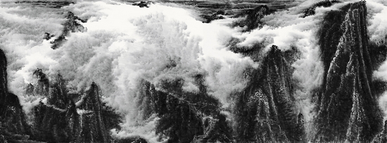 “來支鋼水墨藝術(shù)大展”將于3月下旬在深圳美術(shù)館舉行,展覽展出藝術(shù)家近年來創(chuàng)作的近百件水墨精品,其中既有大氣磅礴、氣勢撼人的巨幅作品,亦有“搜盡奇峰打草稿”之小幅山水寫生。不論尺幅大小,作品皆能營造出氤氳縹緲又充滿豪情與靈氣的壯闊詩境,讓人為之驚嘆。來支鋼性格憨厚淳樸、溫文爾雅,他的作品博大雄渾中又可見精致的細節(jié),又黑又亮,且不失豐富的層次,可謂是樸拙精茂、氣象萬千。