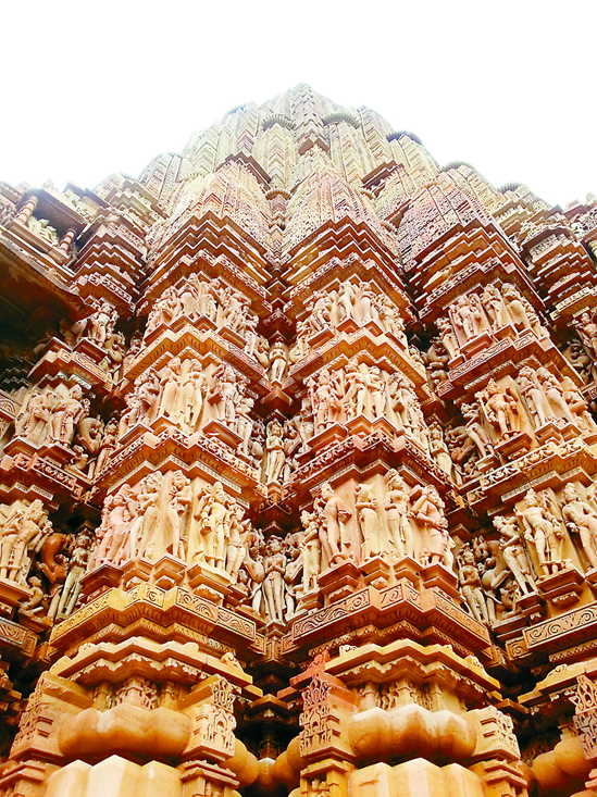 克久拉霍 印度寺廟外墻上的各種動物與人形非常繁復,動作和神態都極富生活氣息,而且以明快大方的形式呈現出來,表現手法令人贊嘆。