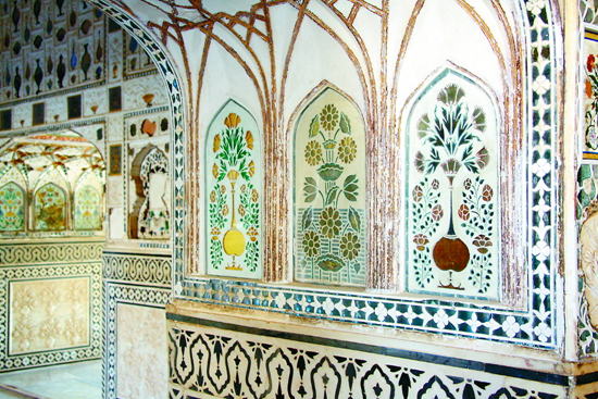 “琥珀堡” 齋蒲爾最令人嘆為觀止的“琥珀堡”,要騎著大象到達古堡,以白色大理石建造、極盡雕刻裝飾之能事。齋蒲爾還是傳統工藝重鎮,尤其是大理石雕刻工藝。這里的細密畫也非常有名,通常是在一張撲克牌大小的紙上作畫,也都是家族世代相傳,一張畫要畫上兩天。