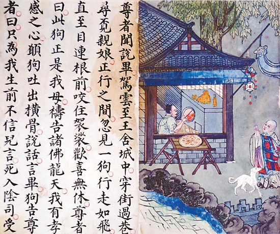 “變文的韻文部分多是三言、五言、七言,而寶卷則不然,它包含了大量的宋詞、元曲。如《上小樓》《浪淘沙》《一江風(fēng)》《傍妝臺(tái)》《紅繡鞋》等,還出現(xiàn)了十字韻文,這種韻文很可能與道情和蓮花落等民間說唱藝術(shù)有關(guān)。”馬西沙表示,寶卷的文學(xué)價(jià)值及其富含的古代繪畫、書法、版刻藝術(shù)都值得深入探究。“1500多種寶卷,沒有一個(gè)版本是相同的,這也是它的藝術(shù)性所在。”