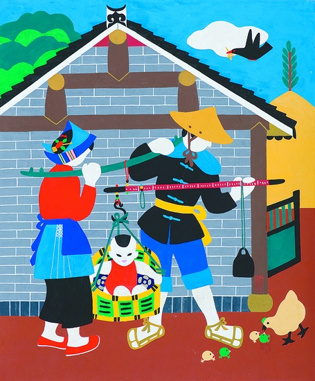 “農(nóng)民畫現(xiàn)在不僅是簡單的職業(yè)概念,它讓家庭在生產(chǎn)功能、生活功能外,增添了藝術(shù)功能。”趙家治介紹,吉林東豐有意識地讓農(nóng)民畫進(jìn)入少年美術(shù)教育領(lǐng)域,進(jìn)入地方校本課程;在促進(jìn)新農(nóng)村家庭和諧方面,農(nóng)民畫也可以解決留守婦女的就業(yè)問題,在農(nóng)村青壯年大多外出打工的現(xiàn)狀中,如何拓展農(nóng)村婦女家用補(bǔ)貼的來源,農(nóng)民畫大有可為。“畫鄉(xiāng)、畫村的農(nóng)民朋友有業(yè)余收入,有精神追求,刑事案件自然就少了,因?yàn)檗r(nóng)民畫致富的、蓋房的、買樓的,多了去了。”趙家治說。