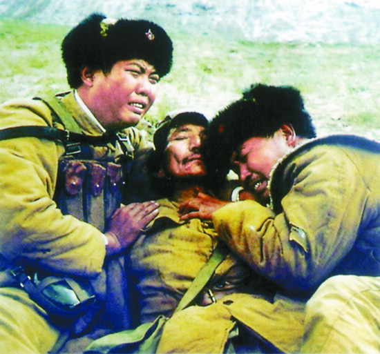 拍攝電視連續劇《西藏風云》的時候,在拉薩那片最純凈的天空下,我突然感到了生命的珍貴和對未來的向往。我想起了為西藏和平解放、平息叛亂和西藏民主改革曾經付出過的青春甚至為之付出了生命的戰友們、藏族同胞們,我的淚水不斷溢出眼眶。劇中有許多軍人犧牲了,其中就有女軍醫楊華(王姬飾)。這個人物并非主角,之所以選用會講流利英語的王姬來出演,不是看中她身上的“洋味”,而是看中了她是一個深愛自己孩子的母親。我提示她,犧牲之時切不可做“英雄狀”,她表演得很到位,面對匪徒的突襲,她果斷應戰,終因寡不敵眾連中多發子彈身亡。倒下去的時候任何表情都沒有,似乎想到幾天前才被送到遠方的小女兒,似乎還有話要講,但就那么走了。把遺憾留給了觀眾去反復咀嚼。最后一集,老班長留在烈士陵園做守墓人,他要永遠陪伴著一起戰斗生活過的兄弟姐妹。鏡頭從一排排的陵墓前橫移而過,每到一個人物的墓前,他/她最美麗最純潔的昔日形象就疊化出來,這種不同的淡入淡出的手法好像是我們腦海中的電波,想起許多往事,又輕輕地埋在心底,人生如夢。所以,當全劇終了的時候,遙遠的雪峰下走來了一群身著紅色衣裙的藏族姑娘,她們捧著潔白的哈達,淡淡的歌聲傳來:“是誰幫咱們修公路……是誰幫咱們得解放……”這是大寫意的手法,也是由“悲”轉向“壯”的最后、最美的一筆。西藏這個神秘的地方流傳著多少傳說,而在《西藏風云》中,這些故事具象到了每一個人物的身上。
