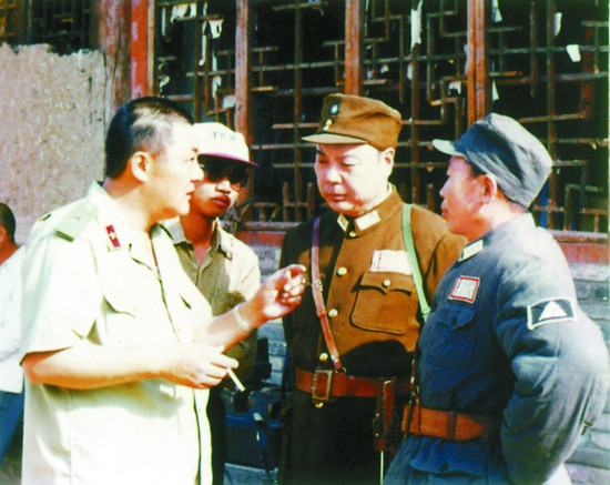 在《血戰臺兒莊》中,當原定飾演川軍師長王銘章的演員因故不能參演時,我決定兼飾此角。這個角色只有四場戲,確切地說是三場半。其一是川軍這支“雜牌軍”被第五戰區司令長官李宗仁將軍收編,王銘章發自內心地對李宗仁傾吐多年來參與打內戰的負疚心情和決心抗日報國的壯志;其二是目睹韓復榘被捕;其三是王銘章率部在毫無后援的情況下固守滕縣,全師覆沒后面對企圖“抓活的”日軍,他鎮定而輕蔑地抽完最后一支煙,然后走到城頭上拔槍自弒;其四只以遺照出現,蔣介石為穩定軍心鼓勵斗志,親臨王銘章追悼會現場。實際上,能夠凸現他的性格的只有一場戲,就是第三場自弒。王銘章做過占山為王的地方部隊頭領,在被收編后才有了“名分”,才獲得軍備上的補充。可以說,他在孤立無援的情況下能堅持固守滕縣固然有對李的報恩情分,但他又的的確確是一位具有高度責任感的民族英雄,面對幾步之遙的敵人,他毫無懼色和后悔之意。在這之前,他應負傷的小兵要求,拔槍射向小兵的胸膛,以完成小兵死也不做俘虜的心愿,而此刻,他卻要自己達成以死報國的誓言。人的生命之珍貴是超越任何事物之上的,王銘章的自殺不是懦弱和逃避而是大無畏、是壯烈。在這場戲中我設計了他抽完最后一支煙的細節:從地上揀起一只燃燒著的樹枝,從兜里掏出煙,煙盒也隨手扔掉。日軍用日語高喊“抓活的”,王銘章可能聽不懂,但他已置生死于度外;他走到城頭上飲彈自盡,倒下的一瞬間,還不甘心就這么敗了,掙扎了一下,終于倒在了眾多與他一樣奮戰到流盡最后一滴血的弟兄們的身邊。