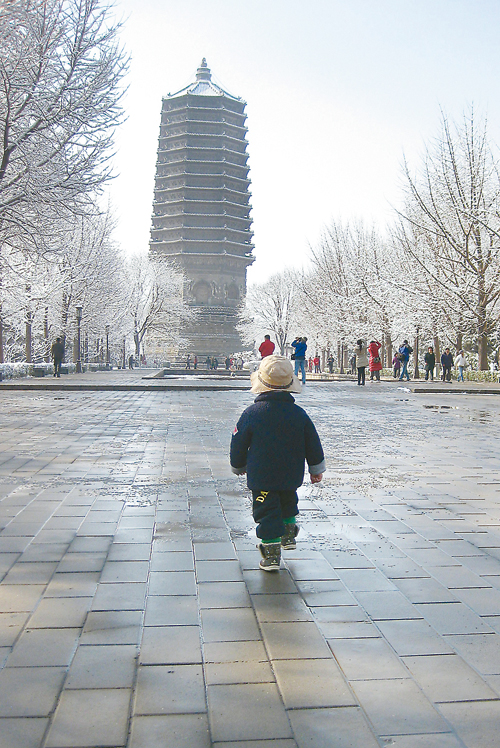 貞觀是勇敢的,他一個人正朝那無聲無光的石塔走去。(貞觀是張暉兩歲的兒子,圖文來自張暉夫人張霖微博)