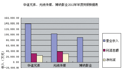 日前,光線傳媒、華誼兄弟、博納影業皆發布2012年年度財報。