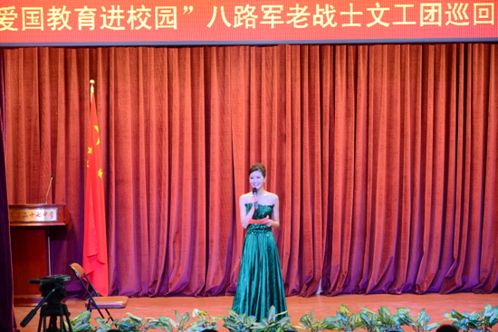 演出開始前,放映了八路軍老戰(zhàn)士文工團制作的愛國教育專題片《愛國大業(yè)》。片中十位領導同志(顧問)的精彩演講和發(fā)自肺腑的感言,擲地有聲,加深了教職員工和學生們對愛國教育的感悟,使學生們深刻理解到了愛國主義的重要性。