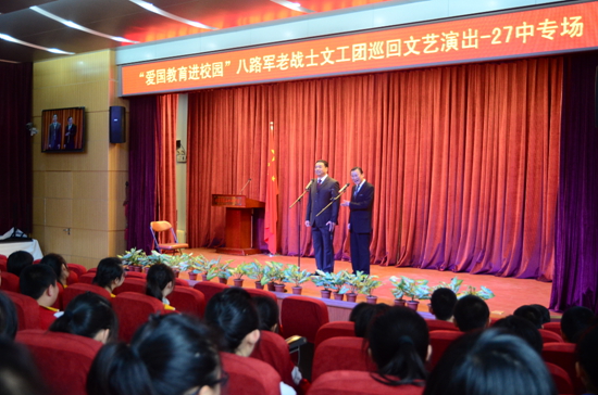 4月15日,“愛國教育進校園”八路軍老戰(zhàn)士文工團巡回文藝演出在北京市第二十七中學舉行。中國文聯(lián)副主席劉蘭芳和北京市有關方面負責同志出席并觀看了演出。