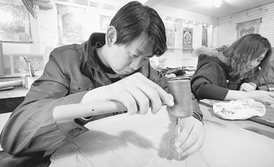 面對商業化的沖擊,有些人憂心忡忡:“皮畫作為具有草原文化特色的一個符號,只有藝術化的精品才真正體現文化精髓,大眾化的工藝品如果湮沒了藝術化的精品,是不利于發展和傳承的。”而云成義則認為,無論是工藝化的大眾產品還是藝術化的精品,都有一定的生存空間,皮畫要發展就應該堅持兩條腿走路。“批量化生產與皮畫本身的發展并不矛盾,如果過于注重精品化,忽視了大眾化,就會陷入‘曲高和寡’的生存窘境。反之,如果更多人接觸到皮畫,他們看得多了,自然分得清好壞。這對畫師也提出了更嚴格的要求,如果一張皮畫至少開價一萬,我們必須讓顧客覺得這幅皮畫物有所值!”畫師劉歡說。