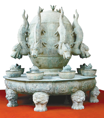“青銅地動儀”。青島市著名詩人、知名收藏家紀(jì)宇收藏。盡管已被專家高度認(rèn)同其歷史價值和文物價值,但社會上還是一片打假聲。