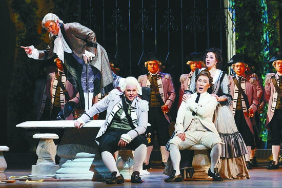 國家大劇院與卡索爾頓藝術(shù)節(jié)聯(lián)合制作的羅西尼喜歌劇《塞維利亞理發(fā)師》劇照 王小京 攝
