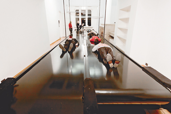 在中國美術館側廳的最里面,是藤幡正樹的《不會反射的鏡子》,構建了一個顛覆的空間——觀眾行走其間,在鏡子中看到的是自身的空洞和反向,我們可以說它是“一種重組的現實,在這其中,虛擬穿越了實體”。我們怎樣評論這樣的媒體藝術作品?或許正如美國藝術史學家約翰·拉塞爾所言:“人們對它的理解可以千差萬別,但每個人的理解又都是正確的。”