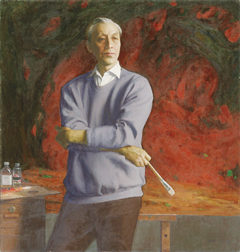 榮獲第二屆“中國(guó)美術(shù)獎(jiǎng)·終身成就獎(jiǎng)”的著名油畫(huà)家詹建俊5月15日出現(xiàn)在中央美術(shù)學(xué)院美術(shù)館的四層展廳內(nèi),仔細(xì)地觀看一幅幅根據(jù)靳尚誼經(jīng)典油畫(huà)、素描作品復(fù)制的版畫(huà)。紅色的展廳墻面,在暗黃的燈光下,增添了幾分凝重的感覺(jué),那幅《畫(huà)家詹建俊》也赫然出現(xiàn)在展廳中央。再一次凝視老友為自己所作的作品,詹老也不由得陷入了片刻的沉思。