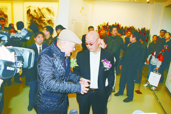 萬鼎與中國國家畫院名譽院長龍瑞在畫展上交流