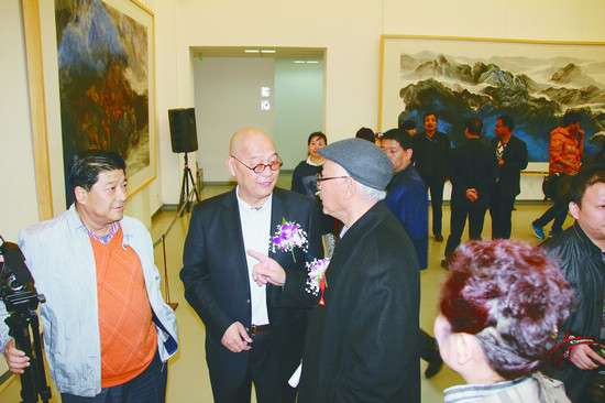 萬鼎與原陜西國畫院院長苗重安在畫展上交談
