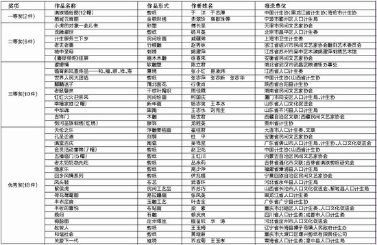 第十四屆中國人口文化獎(民間藝術品類)獲獎作品名單(36件)