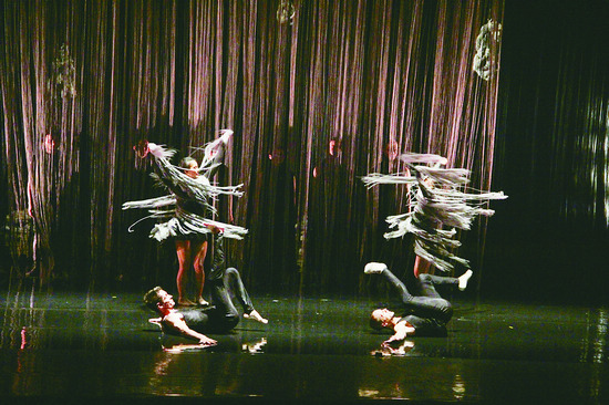 記者:除了舞者的服裝,舞臺布景運用的巨大豎條幕簾似乎是作品的另一個重要意象,您是想以此強化生命或自然的一種秩序嗎?
