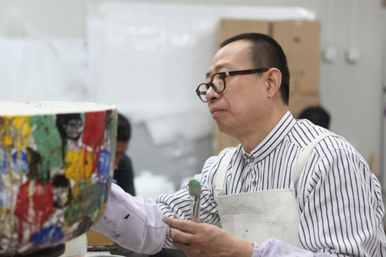 潘魯生陶瓷創(chuàng)作現(xiàn)場(chǎng)