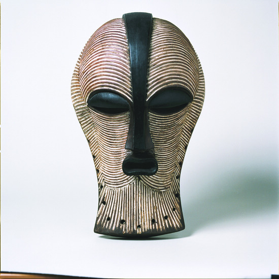 作為2013中法文化之春藝術節的重要部分,由中國國家博物館與法國凱·布朗利博物館合作舉辦的“面具·靈魂的藝術”展覽近日開幕。展出的100件珍貴的面具藏品是按照地區布置的:美洲、大洋洲、亞洲和非洲,在每一個地區的展品當中,又按照文化領域和風格進行分類展示。通過不同地區和不同風格的面具,我們可以發現制作面具的材料是那么豐富,面具的用途又是多么廣泛。除著重凸顯面具的基本功能外,展覽還展示了一些鮮為人知的面具遺珍所蘊涵的政權、宗教、教育、農耕、建筑、娛樂等文化信息。