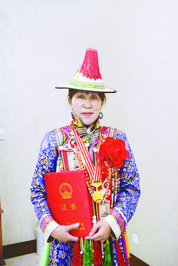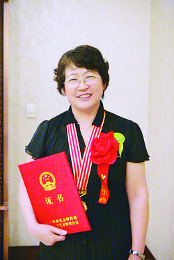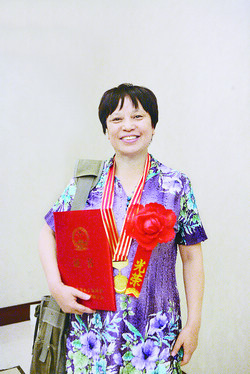 表彰大會(huì)無(wú)疑是文聯(lián)工作者一次盛大的節(jié)慶。獲得先進(jìn)個(gè)人榮譽(yù)稱號(hào)的甘肅省肅南裕固族自治縣文聯(lián)常務(wù)副主席、《牧笛》雜志主編安雪琴特地穿上了漂亮的裕固族服裝,這套服裝是她媽媽親手縫制,每逢盛大節(jié)日方穿,十分隆重,由于北京天氣悶熱,她臉上沁出了細(xì)密的汗珠。她說(shuō):“穿民族服裝,對(duì)自己民族也是一個(gè)宣傳,因?yàn)楹芏嗳藢?duì)裕固族不了解,甚至沒(méi)有聽(tīng)說(shuō)過(guò)。裕固族只有一萬(wàn)四千多人,有著燦爛獨(dú)特的文化,我能與其他民族的文聯(lián)工作者一起登上領(lǐng)獎(jiǎng)臺(tái),是黨對(duì)我們民族的關(guān)懷,感到非常自豪與榮幸。”