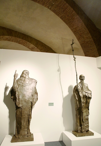 許多觀眾還記得,2012年11月間,“文心鑄魂——吳為山雕塑藝術(shù)國際巡展”在威尼斯宮啟幕,這組“對話”的雕塑便作為該展覽的精神標志立于大廳。另有一組名為《夢中的達·芬奇與齊白石》的作品,將兩位老者立在同一艘“船”的兩端,默默迎接如潮的觀者。