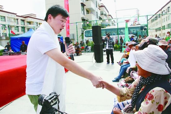 稍作準(zhǔn)備,演員們便開始了精彩的演出。李美儒、梅笑寒、王月帶來的傣族舞蹈《邵多麗》婀娜多姿,劉桐演唱的《故鄉(xiāng)是北京》旋律優(yōu)美,林琦、邢立軍的雜技《雙人拍球》驚險(xiǎn)刺激,陳印泉、侯振鵬合說了為此次演出特別準(zhǔn)備的相聲《我愛拉薩》,“笑果”頗佳,方浩然表演的口技模仿惟妙惟肖,劉惠欣演唱的評劇《花為媒》選段嗓音清麗,李學(xué)義帶來的魔術(shù)變幻莫測,姜旭吹奏的管樂串燒《盛世歡歌》喜慶熱鬧,高鵬飛的一曲《天路》婉轉(zhuǎn)嘹亮,良子的小品《超級女聲》俏皮逗趣,李鐵錚、杜天倫等演出的舞蹈《秦王點(diǎn)兵》古典陽剛……美好的節(jié)目一個(gè)個(gè)呈現(xiàn),村民們的笑臉也如花般綻放。