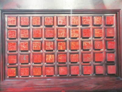 看到中國活字屏風(fēng)受到各界如此好評,紀玉坤萌生了繼續(xù)深挖其文化內(nèi)涵的念頭,決心把它打造成藝術(shù)含量更高、更具有中華傳統(tǒng)文化特色、更具有收藏價值的藝術(shù)品。他想到:如果把其中的活字塊換成國內(nèi)多位著名篆刻家親手刻制的印章,讓其中的“活字”出自當代篆刻大師們之手,豈不就是多種藝術(shù)形式結(jié)合的藝術(shù)品?