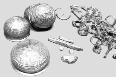圖為二戰時被蘇軍帶走的“巴爾金上尉收藏”中的金器。 柴野攝