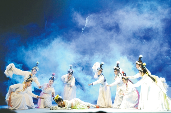 “一部聊齋半部狐,蒲公著意著奇書。浮白載筆寫荒誕,孤憤卻作笑談出?!?月4日晚,隨著一段優美的旋律在耳邊響起,舞臺上山石后忽然探出一只美麗白狐,在亦真亦幻的美景中,新編聊齋五音戲《云翠仙》在北京長安大戲院唱響??侦`玄幻的舞臺效果,有著“北方越劇”之名的婉轉唱腔,融淄博本土文學藝術于一體,凸顯了“聊齋故里書儒林心史,五音經典譜人狐傳奇”的地域文化意蘊。