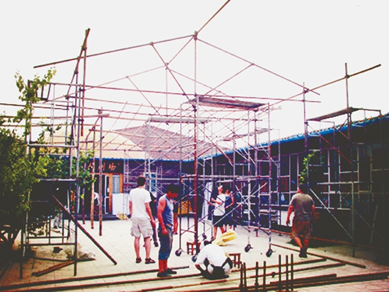 《賽博格·堂吉訶德》(以下簡稱《賽博格》)是北京流火帳篷劇社的年度新戲,由我國北京、臺灣兩地藝術(shù)家和日本藝術(shù)家共同完成。劇社的上一次演出是3年前在皮村的《烏鴉邦2》。如《烏鴉邦2》一樣,此次帳篷劇的導演也還是櫻井大造,他是當代著名帳篷劇導演,投身帳篷劇運動已有31年。雖然《賽博格》與《烏鴉邦2》在內(nèi)容與人物設(shè)置上都體現(xiàn)出一種延續(xù)性,但這次的帳篷劇場卻搭在充滿精致藝術(shù)和產(chǎn)業(yè)符號的798藝術(shù)區(qū)里。