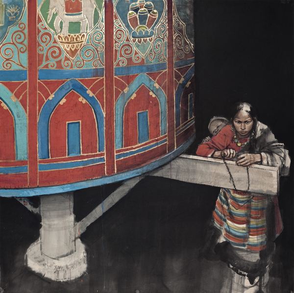史國良《轉(zhuǎn)經(jīng)》 123x123cm 1995年