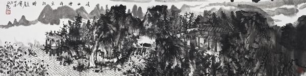 何加林《溪山煙雨宜釣時》34x138cm 2013年