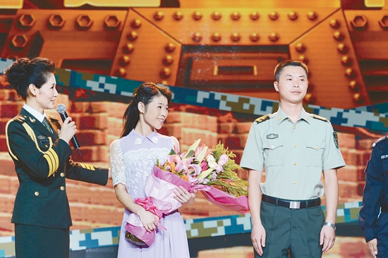 由基層官兵表演的戰士舞蹈《士兵腳步》,從部隊日常訓練中提煉舞蹈語匯,高度一致、瀟灑利落的戰斗動作,表現出基層新一代官兵的風貌和矢志打贏的信念。晚會還精心編排了兩組特色鮮明的軍歌聯唱。一組是紅色經典:《歌唱二郎山》《毛主席的戰士最聽黨的話》《我為偉大祖國站崗》;另一組歌唱軍營故事和火熱情感:《軍人的名字是第一》《邊關軍魂》《當兵的歷史》。在這個軍人的節日里,圓滿完成了神舟十號飛船載人航天任務的三位英雄航天員聶海勝、張曉光、王亞平將代表奮戰在航天事業的廣大部隊指戰員向全軍戰友致以節日的敬禮和誠摯的問候。
