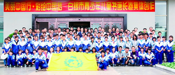白銀市領導和書畫名家與參與集體創作的青少年合影留念