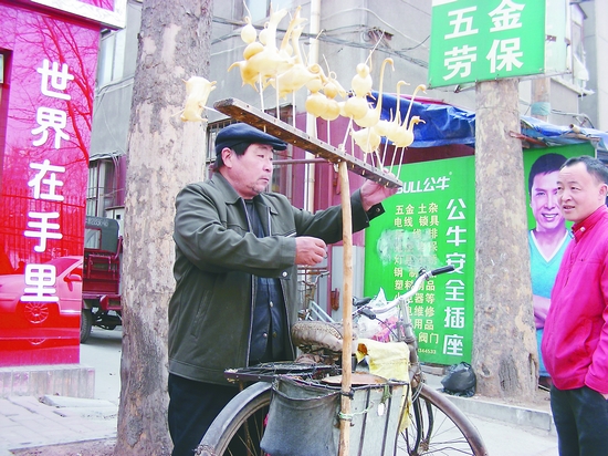 常常有小孩子把家里沒有用完的牙膏擠出來,用牙膏皮去換糖人吃,即便挨打也覺著甜滋滋的。 于洪啟 攝