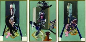 弗朗西斯·培根的《三聯畫》繪于1976年,作品以古代希臘神話為主題,由3幅巨幅畫作組成,中間畫面是一個沒有頭的人被三只禿鷲環繞,兩側畫面分別為一名面容畸形的男子。這幅作品被專家評價為私人收藏家手中最重要的弗朗西斯·培根的代表作,也被評論界認為是弗朗西斯·培根最好的作品。
