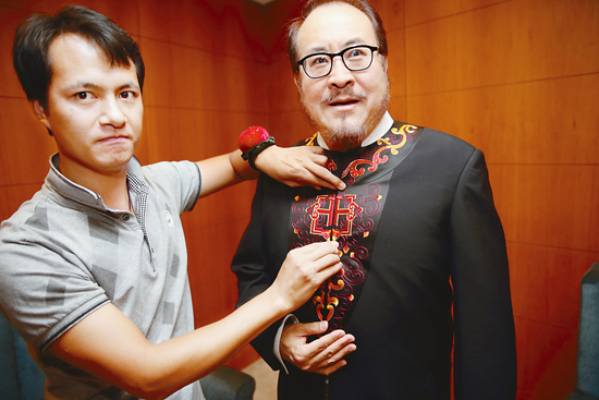 8月14日,著名歌唱家田浩江在發布會上試演出服。