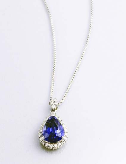 藍寶石鉑金鑲鉆吊墜項鏈