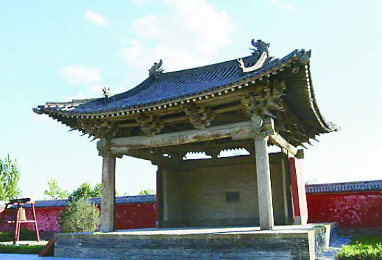 尤為值得關(guān)注的是,在這次展覽的策劃上使用了縱、橫兩軸來搭建展示平面和展覽的主線。縱軸即史脈,是古戲臺文化底蘊的闡述。從古戲臺發(fā)展的歷史脈絡(luò)來看,其概念隨著原始歌舞一同起源于原始社會的祭祀活動,此后,它的演變也始終與戲曲的發(fā)展基本呈現(xiàn)出同步化的特征。金元時期是中國戲曲史上非常重要的時代,雜劇成熟并逐漸興盛起來,最終取代百戲歌舞成為演出的主要形式和內(nèi)容。與之相應,古戲臺的發(fā)展也歷經(jīng)露臺、舞亭等步入成熟期。如山西臨汾魏村牛王廟戲臺,建于元至元二十年(1283年),戲臺坐北朝南,建在高1米多的磚砌臺基上,面寬7.45米,進深7.55米,平面近似方形,單檐歇山頂。臺身四角立柱,梁架結(jié)構(gòu)獨特;藻井精巧,具有攏音功能;周身三面開敞,僅后檐與兩山后部砌墻,山墻約為山面總長的三分之一,顯示出元代戲臺已有前后場之分,并形成了三面觀形制。這是由雜劇的演出特點決定的,此種改革奠定了中國戲臺的基本樣式。