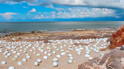 實(shí)心瓷卵的第一站是廣西北海冠頭嶺海灘。施少平稱,生命的起源在海洋。