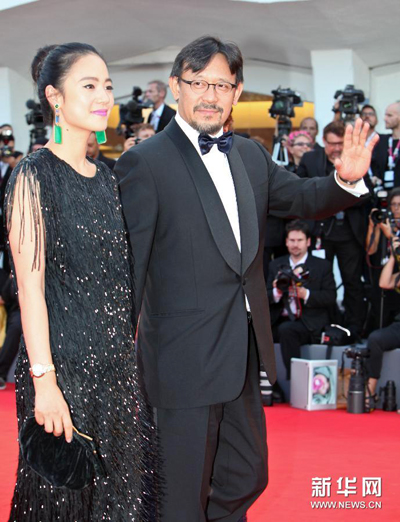 8月28日,在意大利威尼斯,第70屆威尼斯電影節主競賽單元評委姜文(右)和夫人周韻走上電影節開幕式紅毯。當日,第70屆威尼斯電影節開幕。 新華社記者閆婷攝