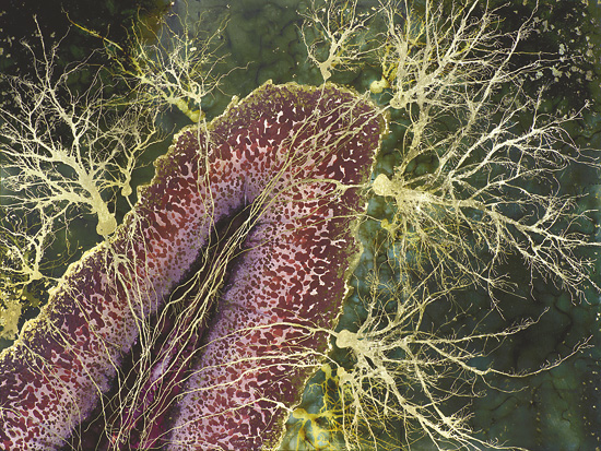 現(xiàn)在鄧恩是一名住在費城的全職藝術(shù)家,他說在他的研究生期間,看到神經(jīng)細胞遇到某些染色劑時產(chǎn)生的特別的美,這讓他產(chǎn)生了靈感。