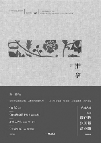 陳枰即是電視劇《推拿》的編劇。今年7月,西苑出版社出版了她的電視劇劇本《推拿》,全書分上下兩冊,四十余萬字,其電子版圖書也在各個電子圖書平臺陸續(xù)上線。