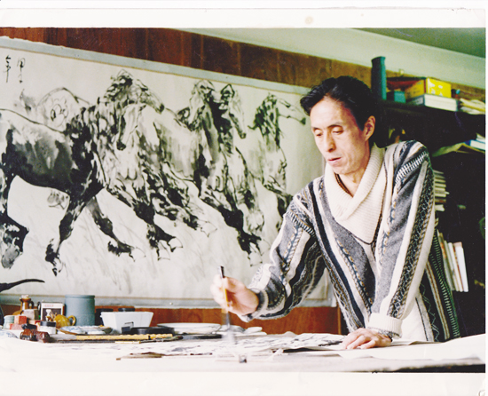 過了“隨心所欲而不逾矩”的年齡,他都不太再重視完整的形象,有人拿了他畫的狂奔的馬:“哎呀少了兩只蹄子。”劉勃舒說:“我只是表現它奔跑,也不知畫了幾只蹄子。”他注重的是心性所向的寫意表現。單馬豪放灑脫,飄逸神態,群馬令人驚心動魄的奔騰嘶鳴,均通過劉勃舒的筆墨,達成一種獨立于繪畫形象之外的高蹈的審美境界。在他的創作中,筆墨已不單單是狀物寄情的藝術技巧,更是抒發情懷的表現手法。“中國畫的點線是有感情的,筆墨變化是豐富的,我們現在對中國畫的作用發揮得不夠,不能單純地畫,要善于動腦子,悟道。”他如此說。