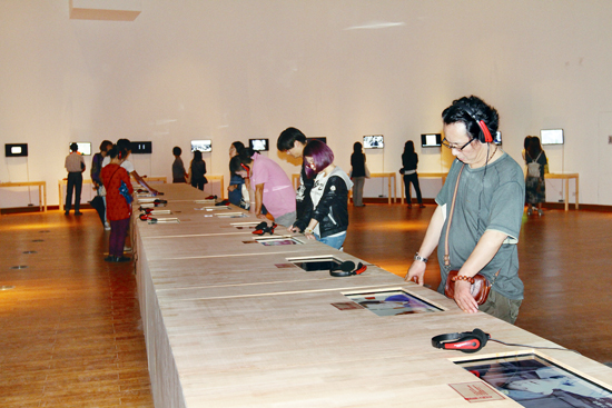 當然,一個小小的道具箱并不能滿足觀眾對那些響亮名字的期待,策展方自然也想到了。在每個箱子的一側,都有一小塊LED屏,滾動播出那些名字背后的故事。陸儼少的畫作為何常有婉約之氣,谷文達實驗水墨的創(chuàng)作緣起,黃永砯典型化符號語言的解讀,還有第一個道具箱的擁有者艾青,意象化的影像配以抒情的詩句:過了多少億年,在巖層里發(fā)現(xiàn)你,依然栩栩如生。據了解,這85位藝術家的影像總時長在30小時左右,由中國美術學院近百位在校師生組成的一個青年劇組于今年3月至8月拍攝制作完成。從形式語言到影像風格無不凸顯了當下的立場與態(tài)度,展示了策展團隊對85個“發(fā)光體”的歷史化解讀。自然,短短幾分鐘的影像只是一個橫斷面,是策展方對藝術家的形象化描述,而非藝術家本人的自我言說,這也是當下藝術場域中策展人話語權力的一個鮮明表征。