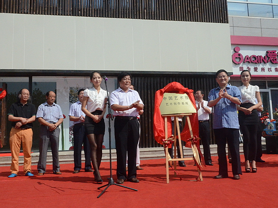 中國藝術(shù)報社社長向云駒,山東省日照市政協(xié)副主席林玉營為中國藝術(shù)報日照畫院暨藝術(shù)創(chuàng)作基地揭牌 黃遠(yuǎn) 攝